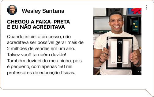 Um grupo exclusivo no Whatsapp com os Faixas-Pretas do meu time, minha equipe e todos os membros do Plat 1+ para você tirar suas dúvidas, fechar parcerias de alto nível, compartilhar sacadas e receber insights em tempo real.